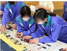 車いす体験学習をしながら車いすルートマップを配布したり、電動車いすや福祉車両の乗車体験を行ったりしました。さらに、ワークショップではレゴを使って工場で車が作られる過程を体験してもらいました。コンテンツが充実したものとなり、生徒さんに多様な側面から学びを得てもらうことができました。